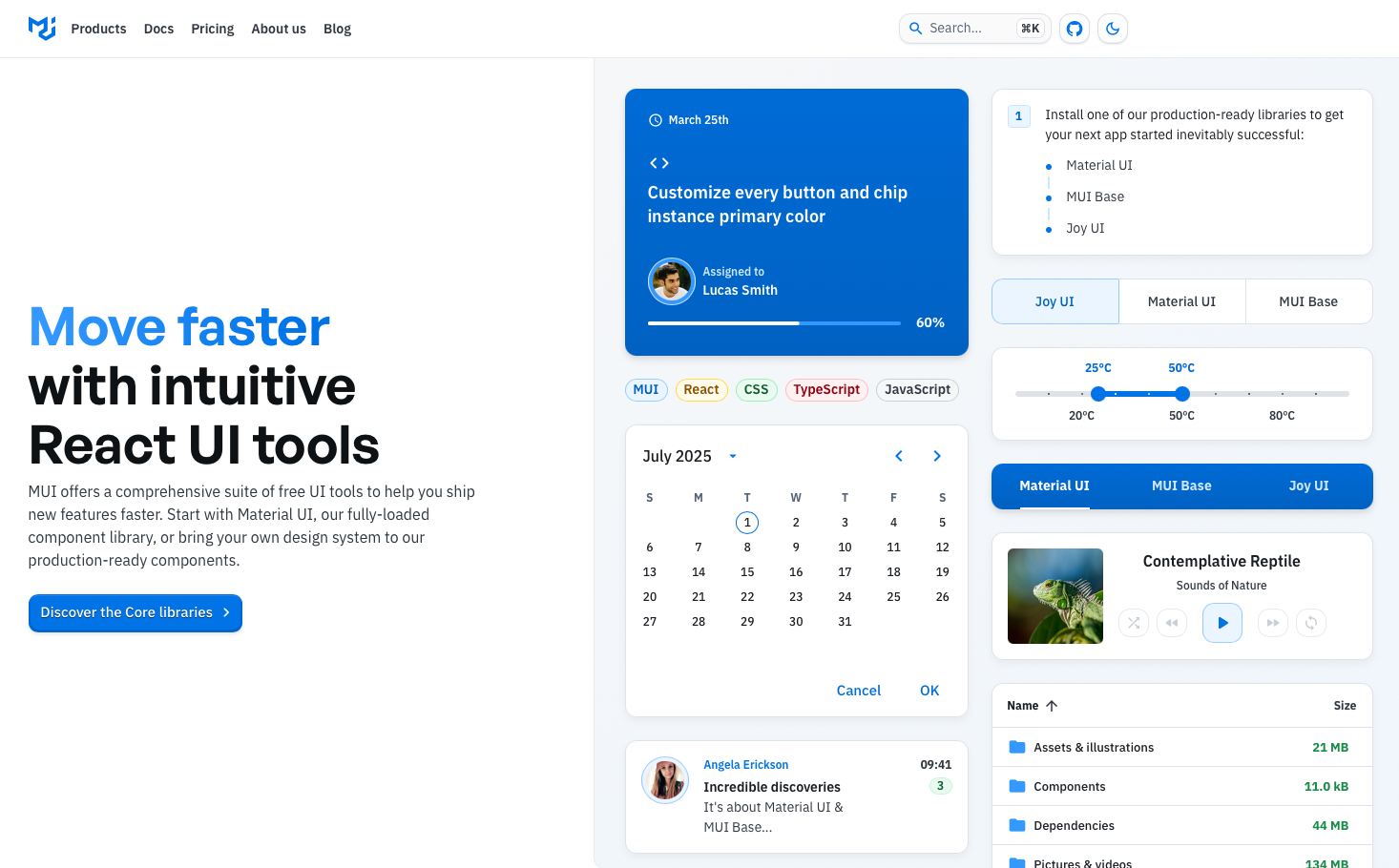 Material UI aims to provide building blocks for developers to create great user interfaces using the Material Design guidelines as a reference, which we strive to follow where practical.